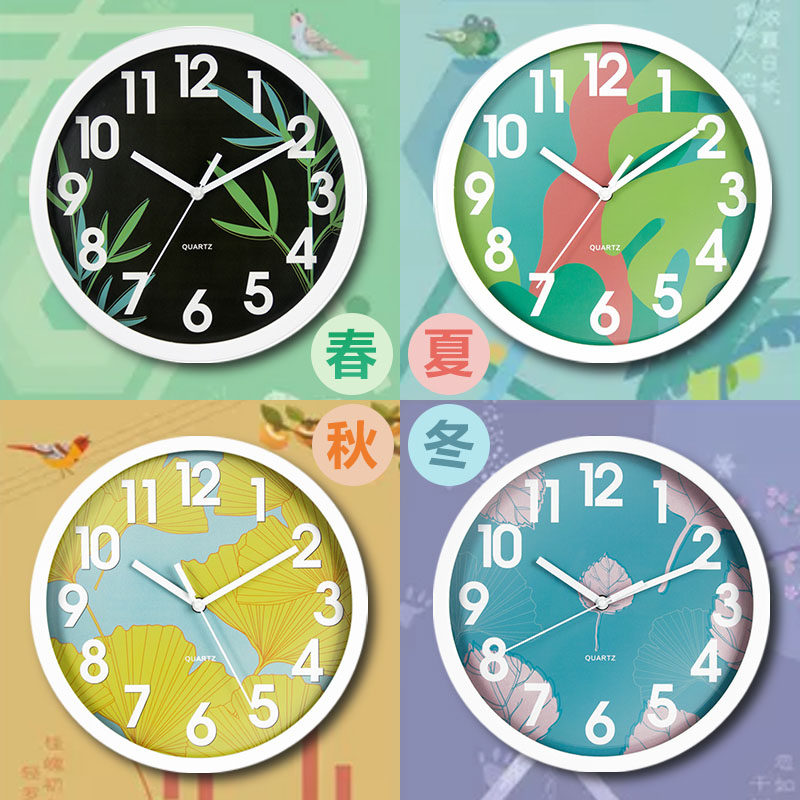 田园风格挂钟银杏叶四季钟表现代静音免打孔时钟北欧艺术风简约热门设计联盟服务商