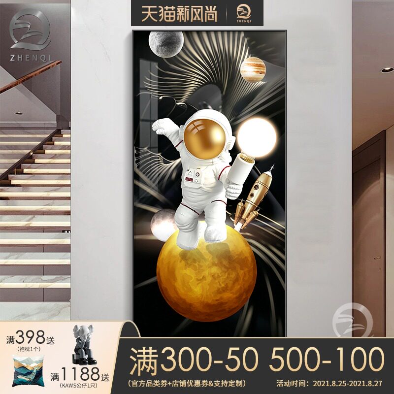 太空宇航员挂画入户玄关装饰画客厅走廊过道卡通艺术儿童房落地画热门设计联盟服务商