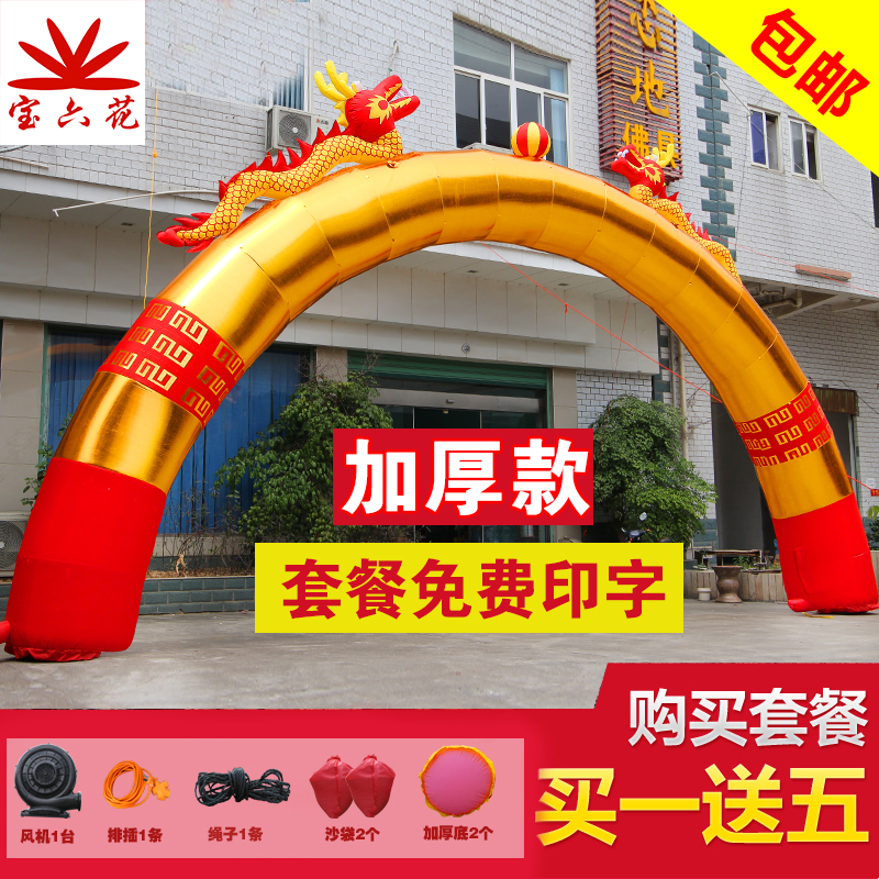 开业充气金色双龙拱门婚礼婚庆店庆广告庆典彩虹门气模风机加粗热门设计联盟服务商