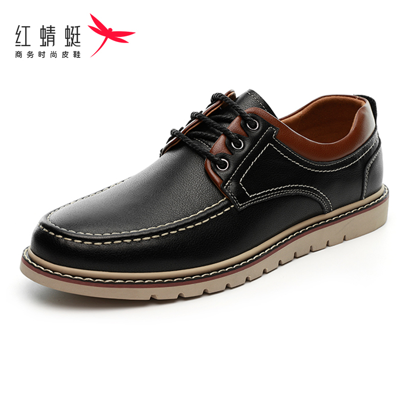 红蜻蜓男鞋皮鞋春秋真皮商务休闲鞋男士时尚套街爸鞋软皮舒适